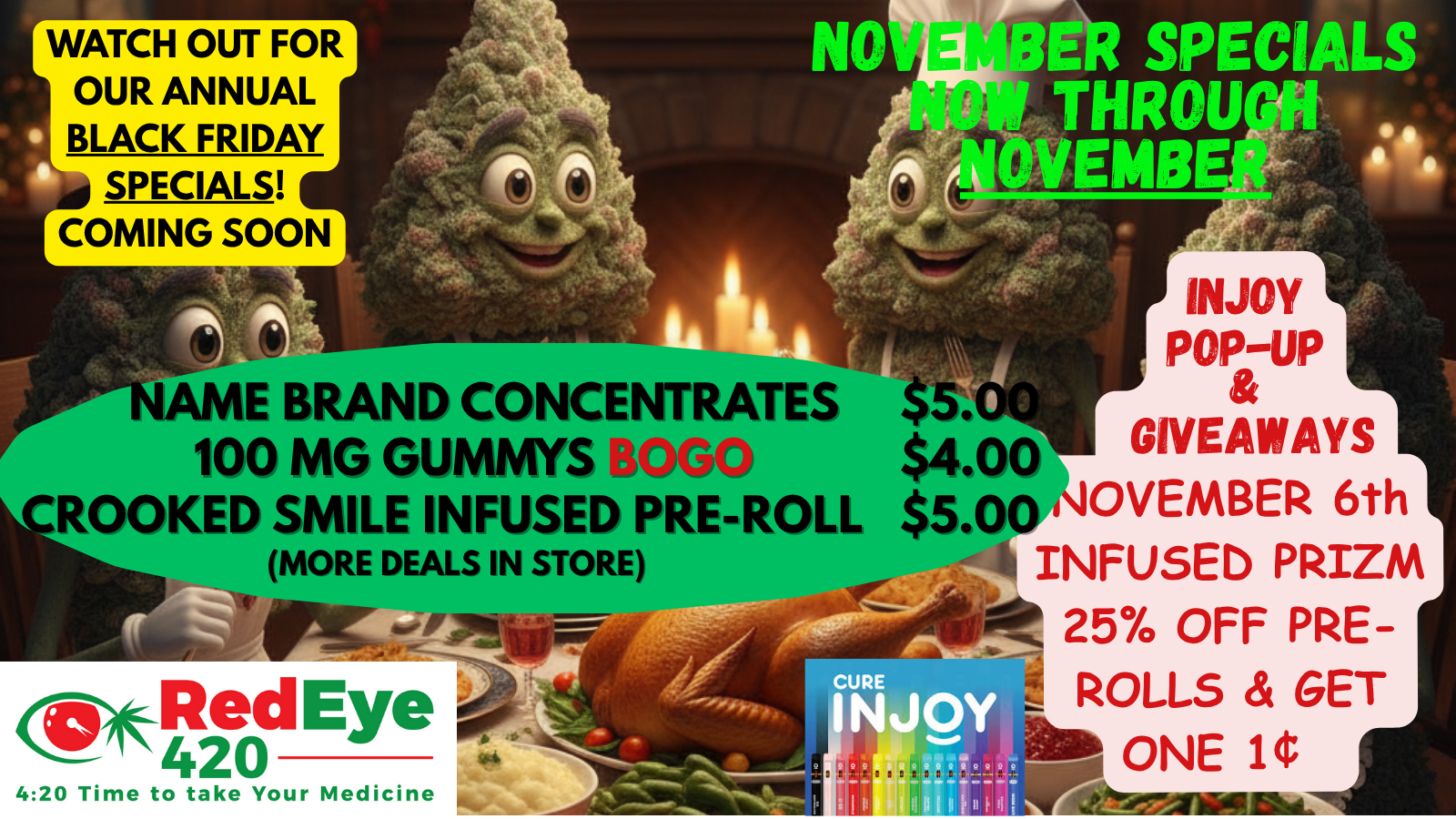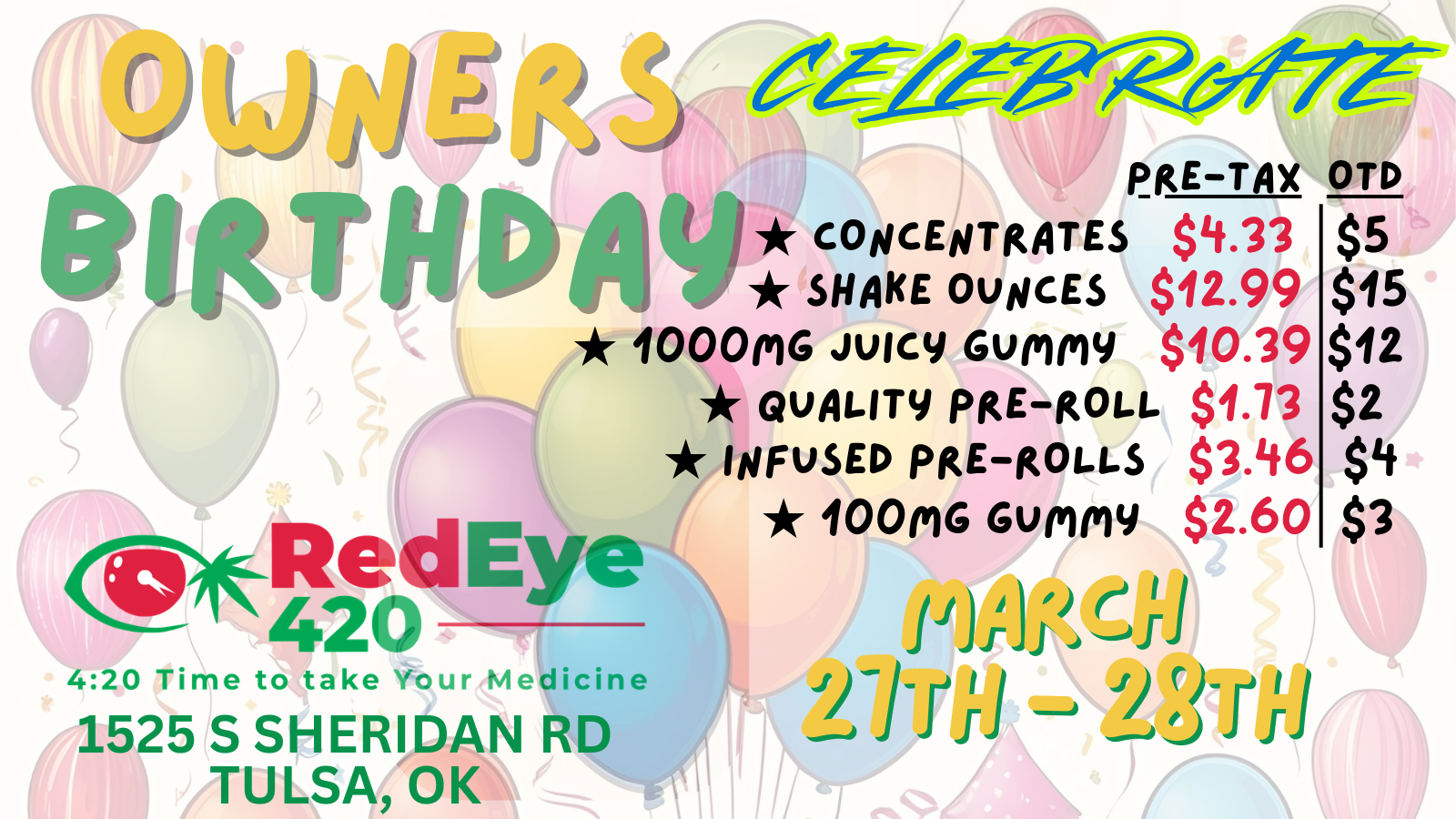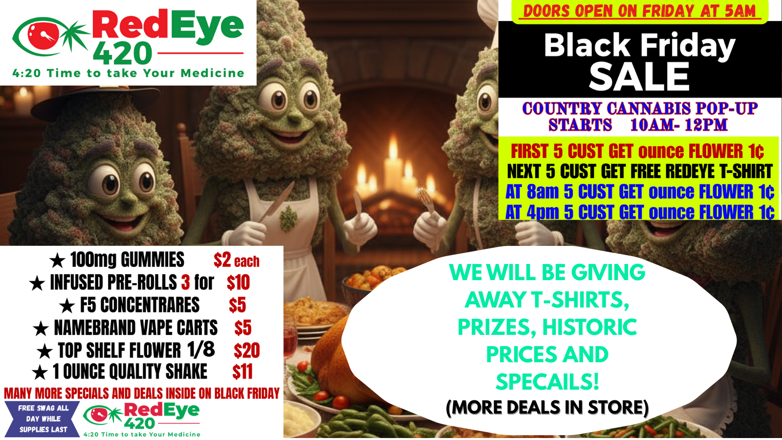 - Red Eye 420 Dispensary reserves the right to cancel any and all sales and/or promotions at any time. More information and legal notice click here.